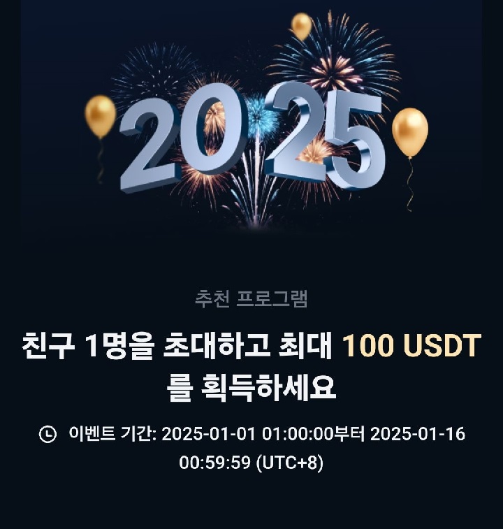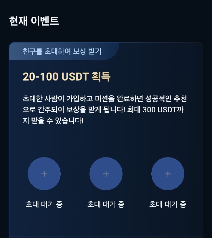 - 친구 1명을 초대하고 최대 100 USDT를 획득