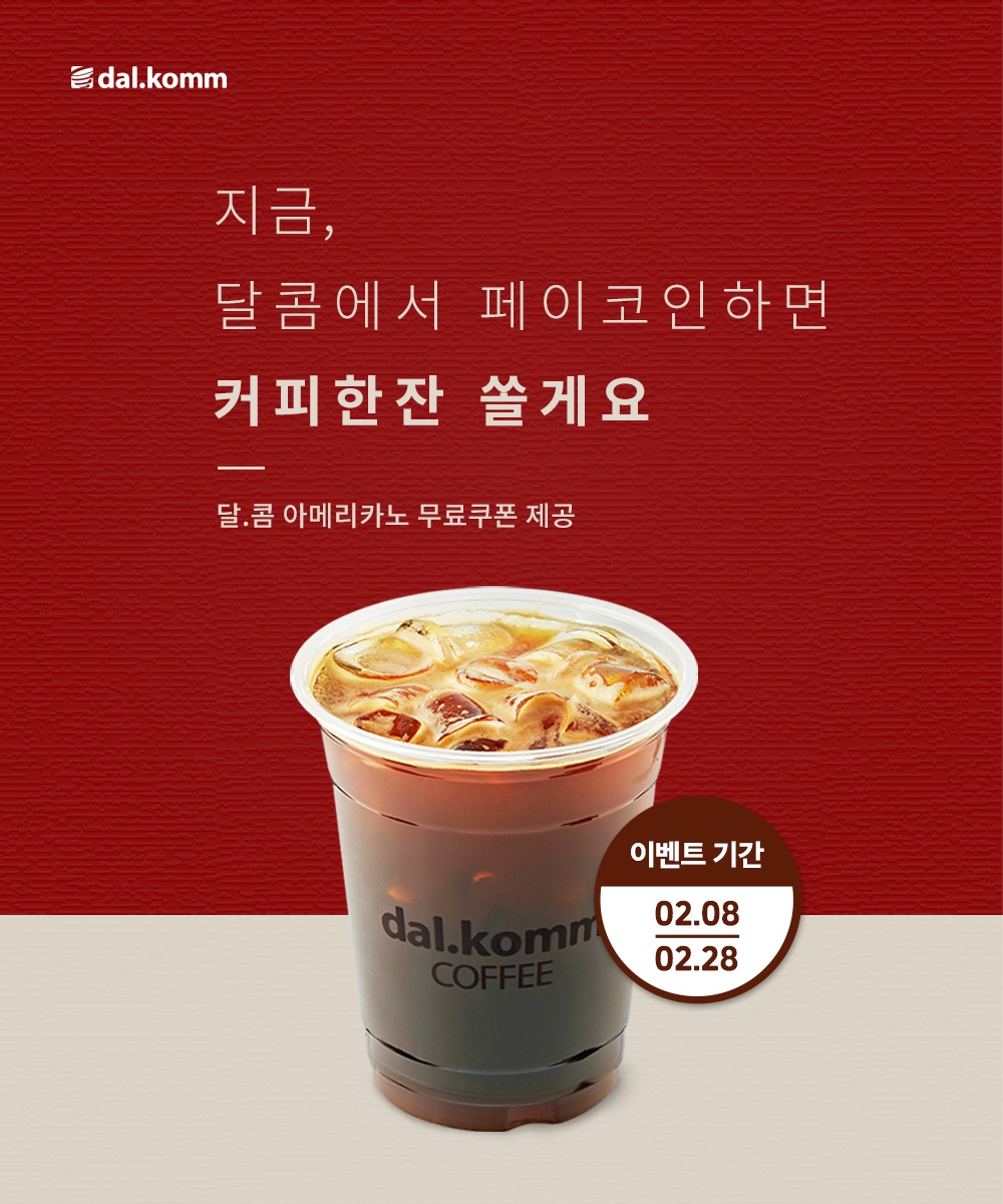 - 달콤 APP에서 페이코인 결제 시, 아메리카노 무료쿠폰 즉시 지급(1일 1회), 온라인 결제 : 2021.02.01 ~ 2021.02.28