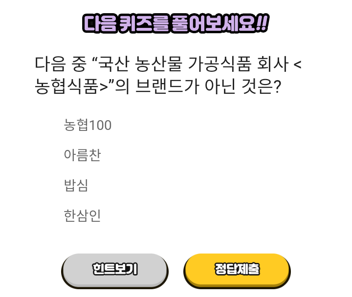 - 농협식품 브랜드 퀴즈 : 2021.02.19 ~ 2021.02.28