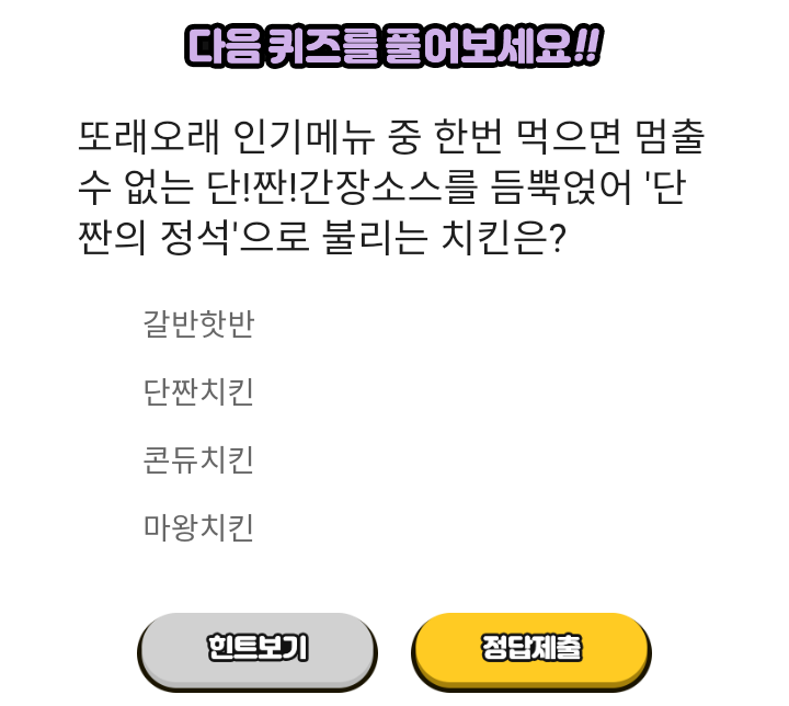 ▶ 정답 : 단짠치킨