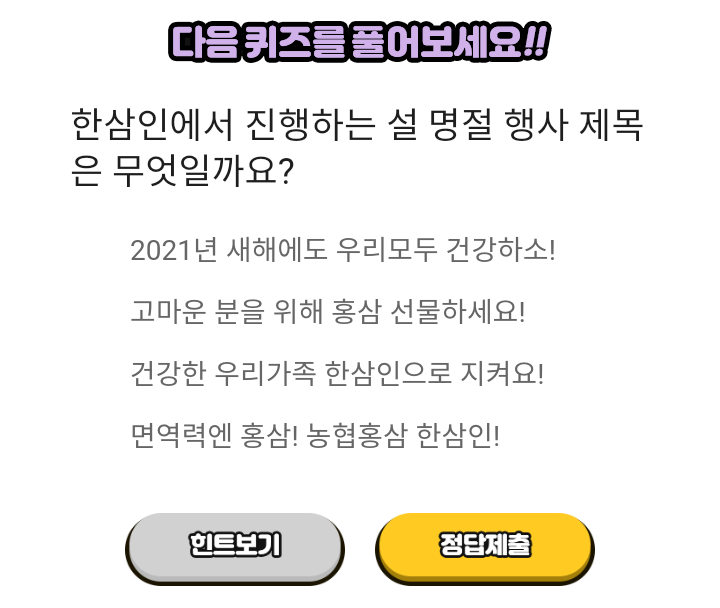 - 농협 한삼인 퀴즈 : 2021.02.01 ~ 2021.02.10