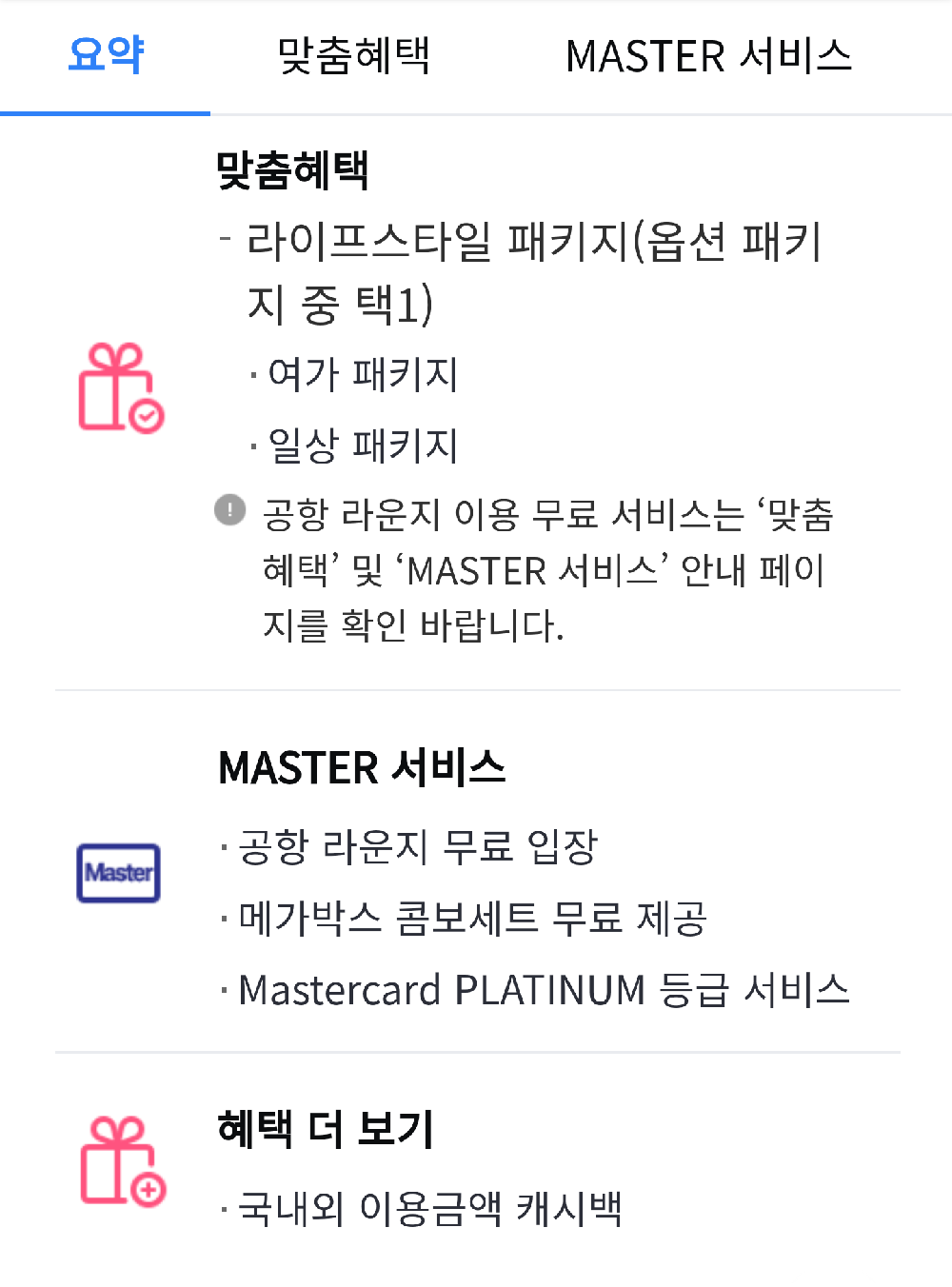 - Mastercard PLATINUM 등급 서비스