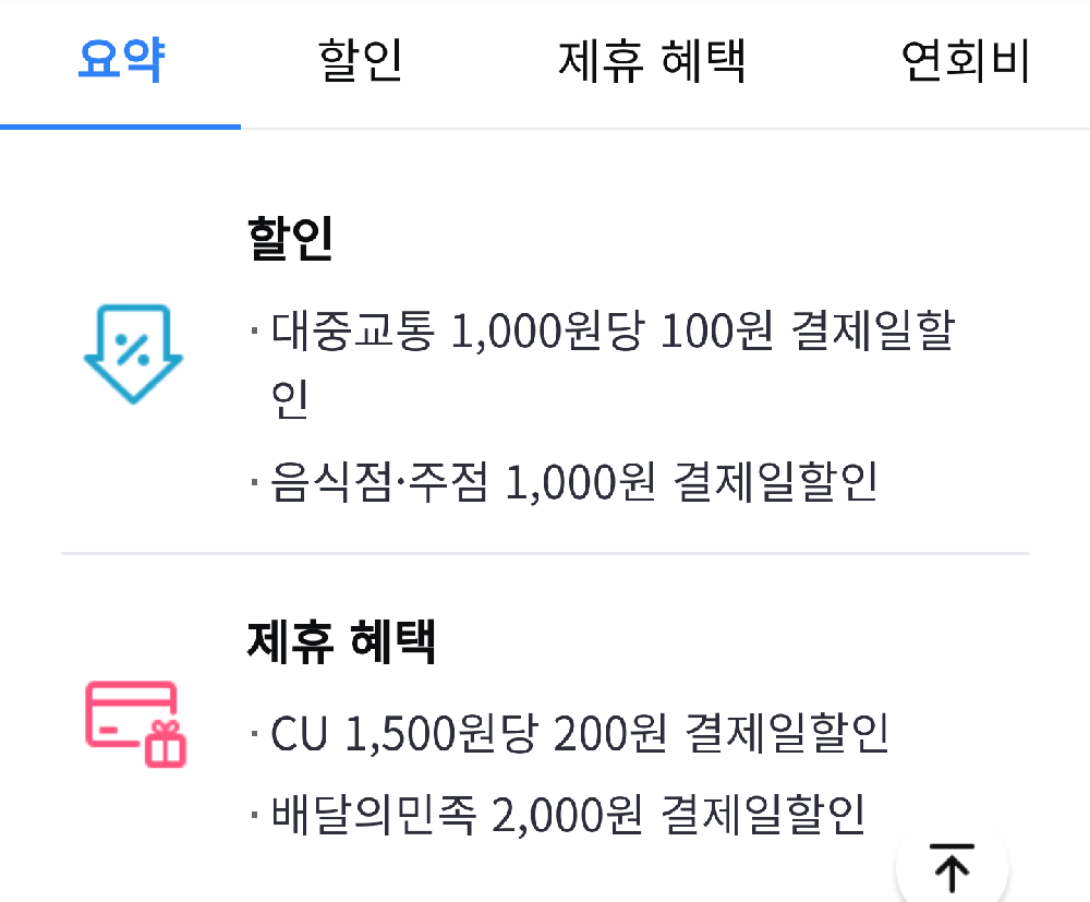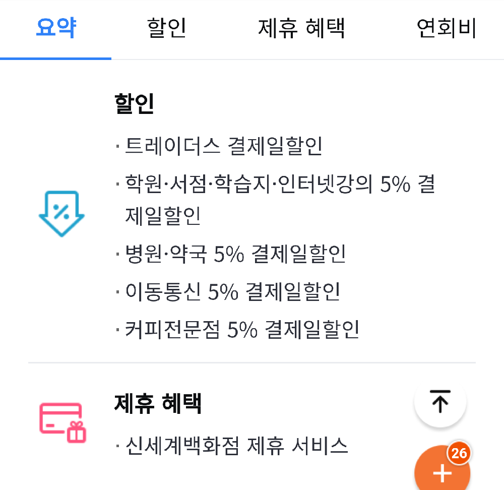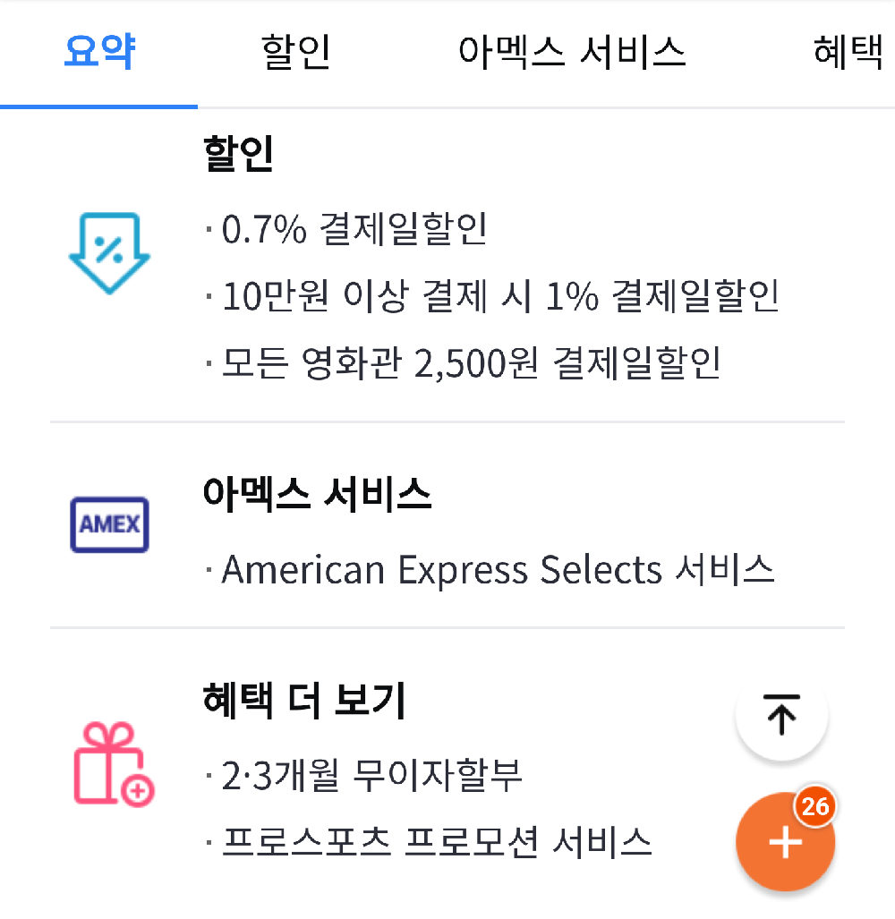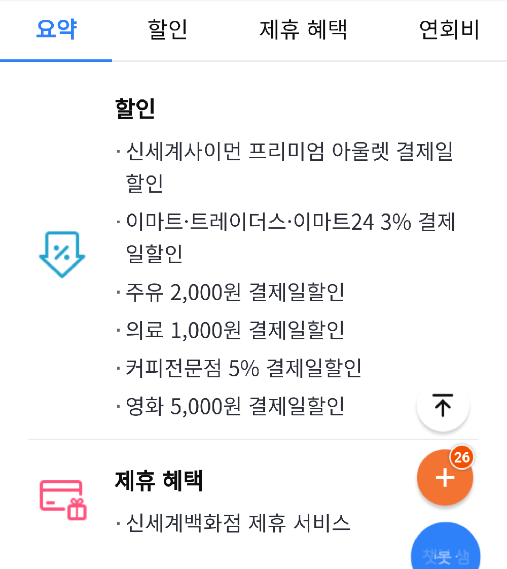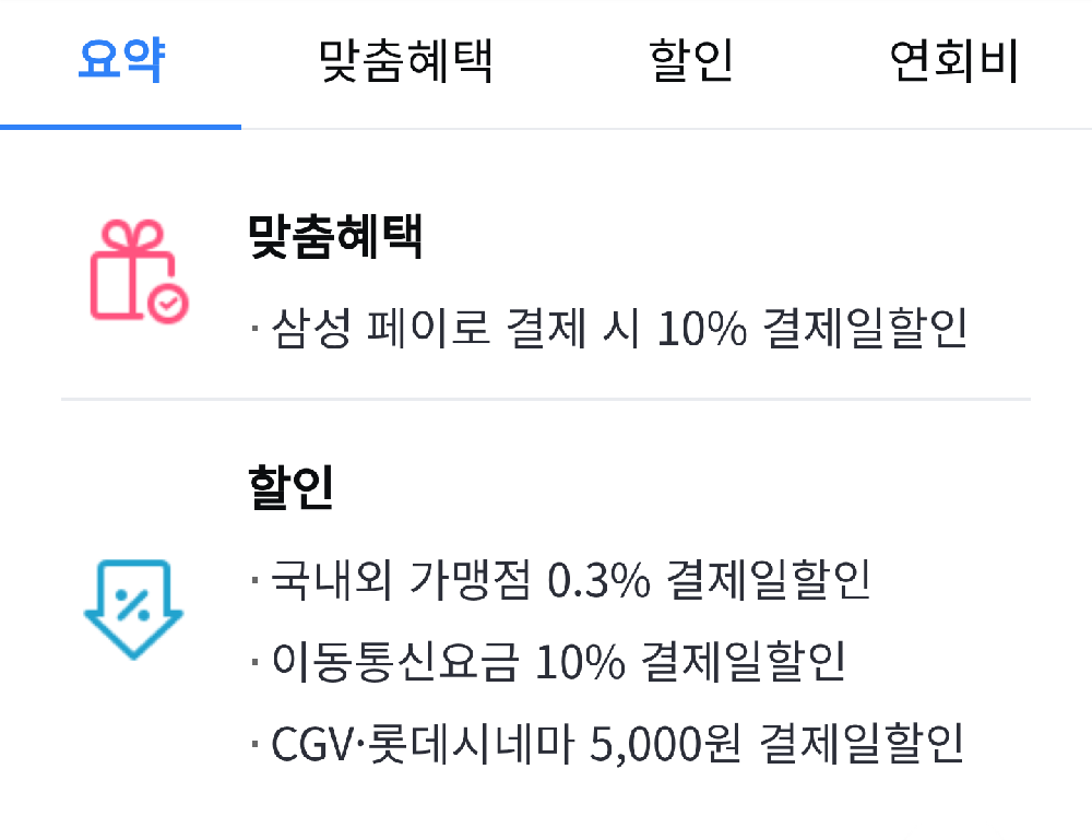 - 국내외 가맹점 0.3% 결제일 할인