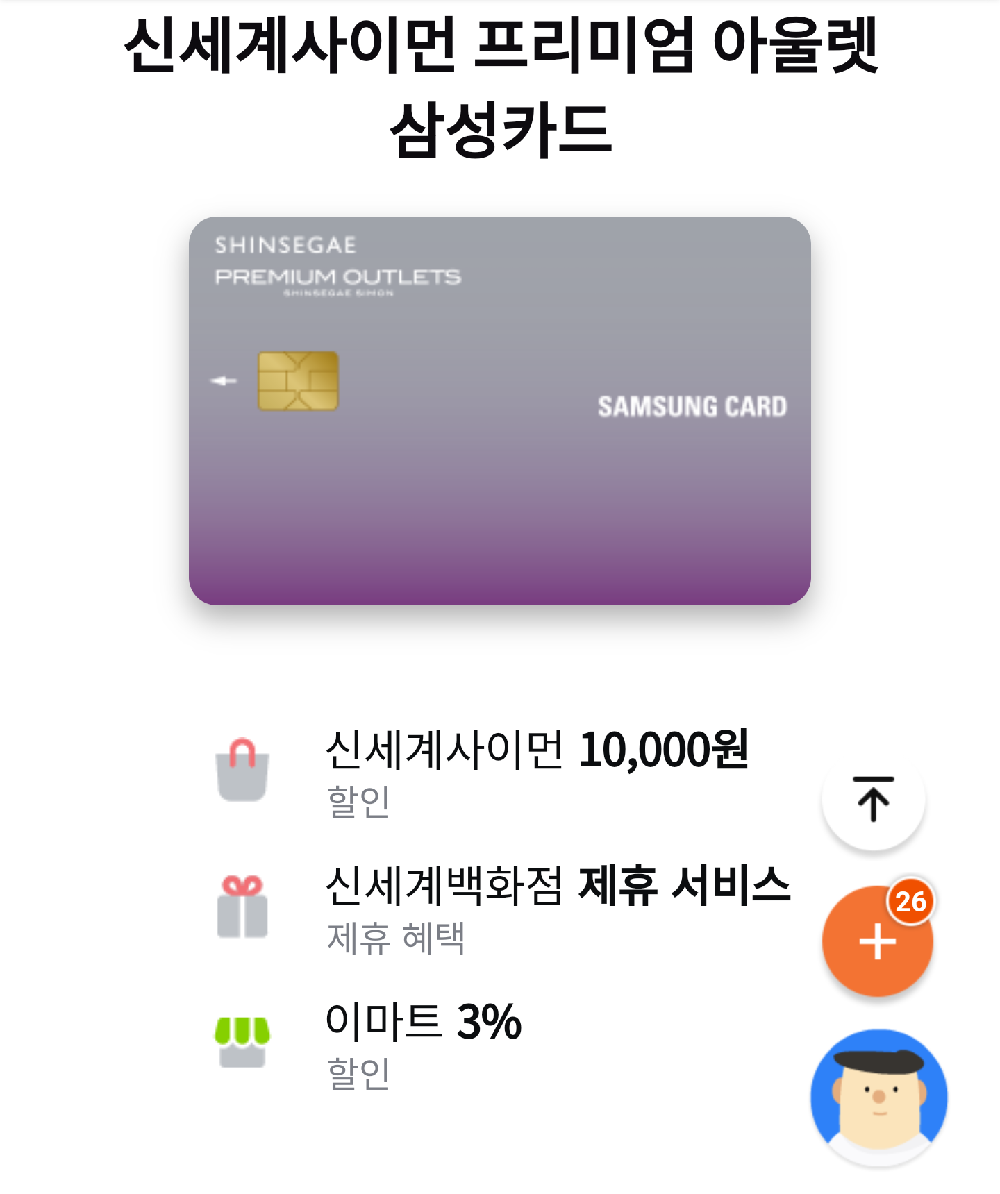 - 신세계 제휴사 쇼핑 혜택에 주유 등 일상 할인, 신세계사이먼 프리미엄 아울렛 혜택을 더한 카드