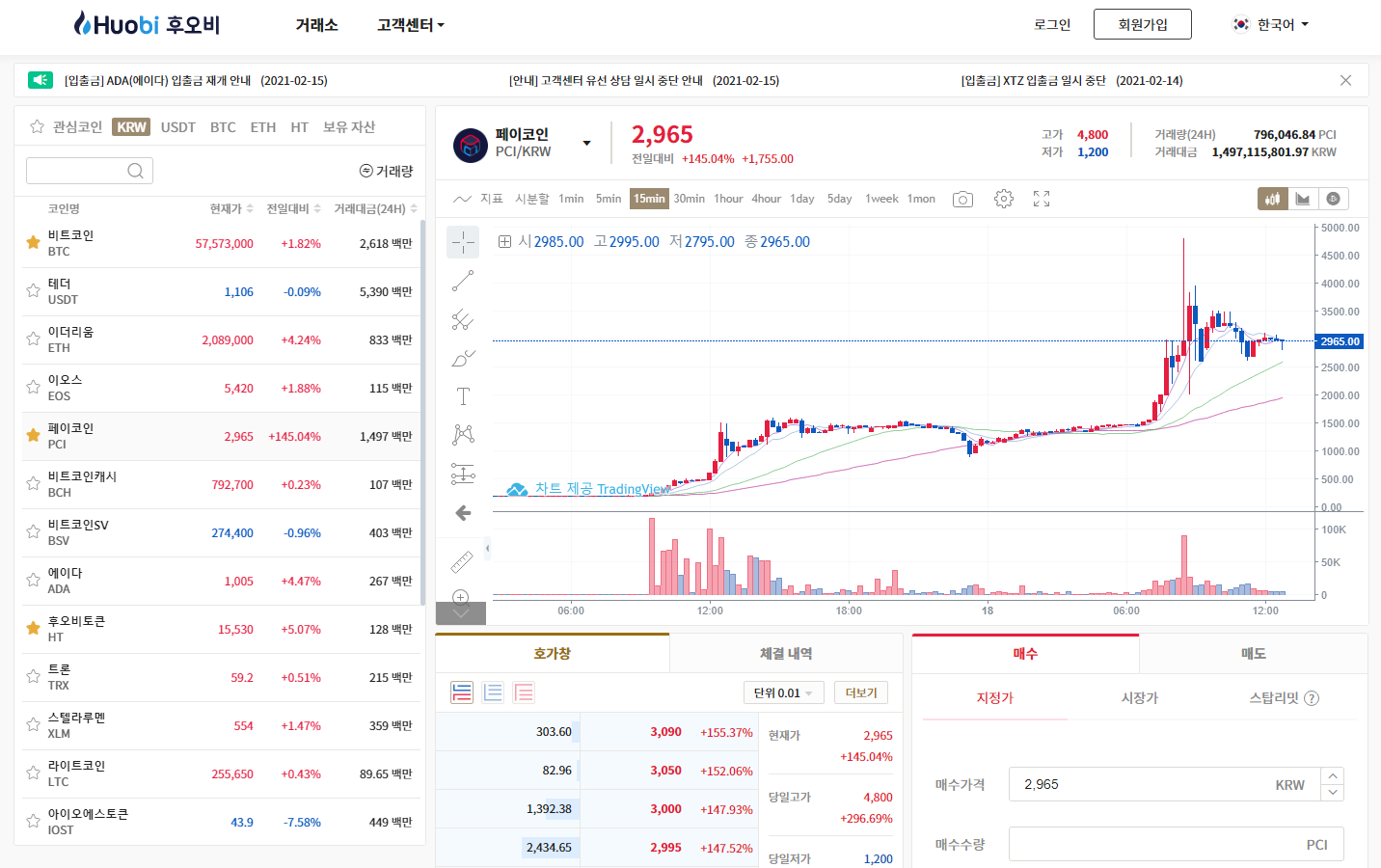 ▶ 후오비(Huobi) 코리아에서 페이코인 시세 조회 및 거래 후기