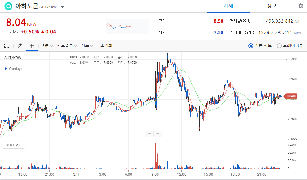 ▶ 업비트 아하토큰 시세(1AHT=8.04원)