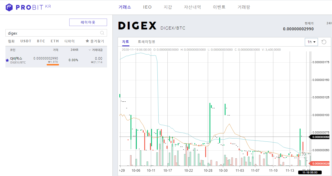▶ 프로비트 다이젝스(DIGEX) 토큰 시세 : 1.970원