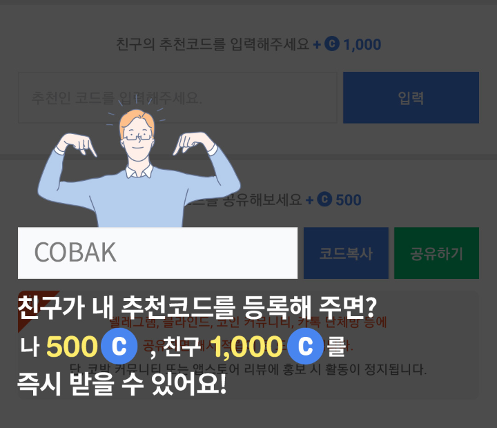 앱테크, 코박(cobak) 친구초대 1000캐시 즉시 지급( 추천코드 : KU4RDIT)