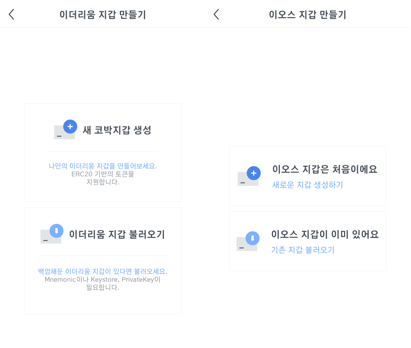 ▶ 코박(cobak) 이더리움, 이오스 지갑 만들기
