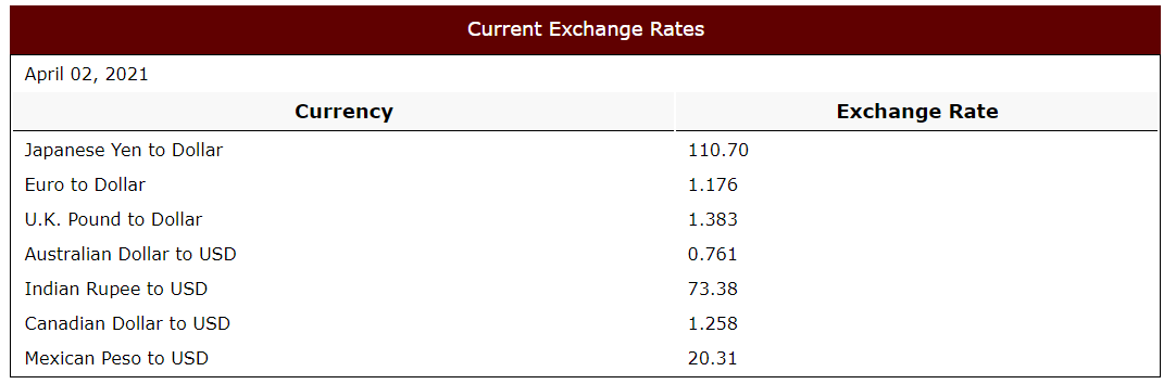 ▲ 현재 환율(Current Exchange Rates)(2021.4.2)