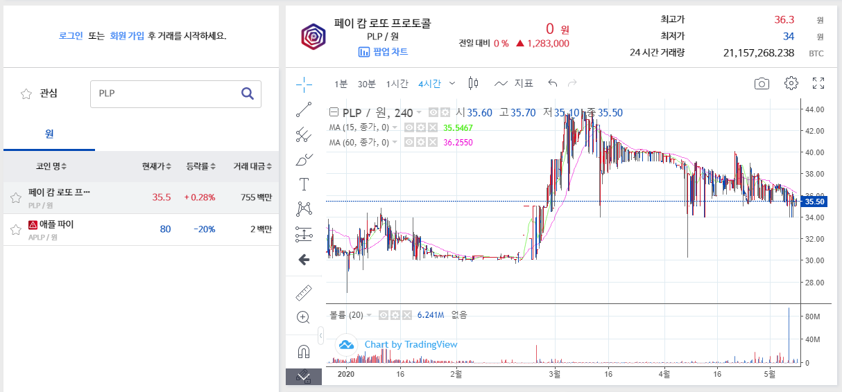 PLP(페이캄로또프로토콜)는 포블게이트 거래소에 상장되어있으며 현재 개당 35~40원선에서 거래되고 있다. 늦기전에 초대링크로 페이캄월렛 가입하고 125PLP 받고, 추가 코인도 받아보자.