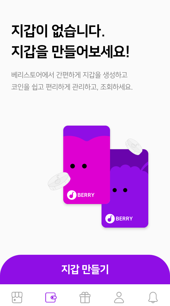 - 지갑 생성하면 100베리(berry) 지급된다.