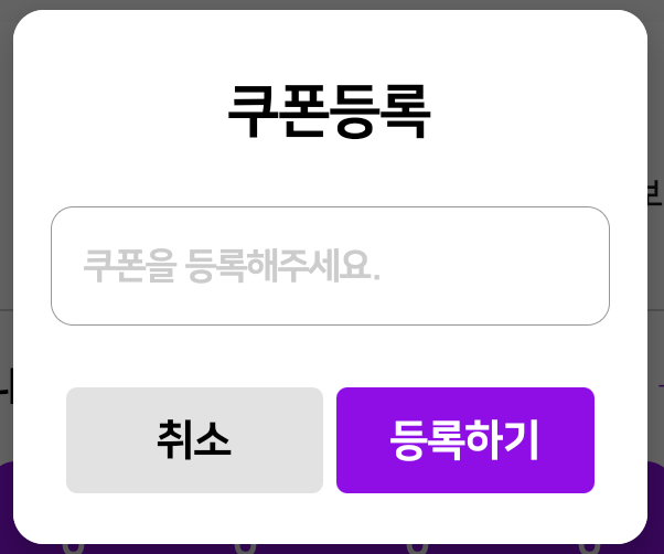 - 지갑생성 완료 후 쿠폰등록에서 쿠폰번호( QYWW3T62 )를 입력한다.
