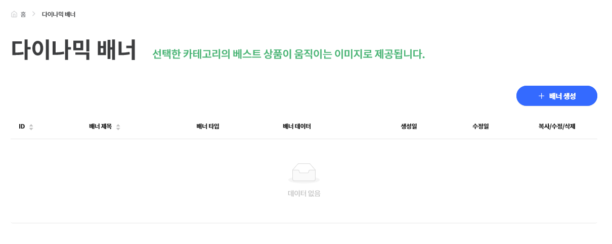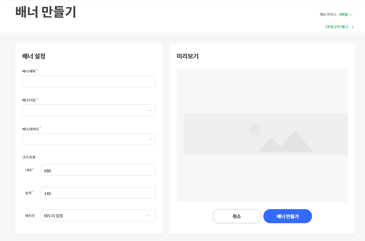 1. 링크생성 > 다이나믹 배너 클릭 > 배너 크기 조절