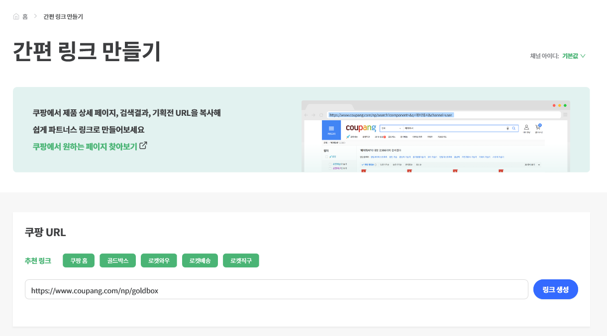 - 쿠팡에서 제품 상세 페이지, 검색결과, 기획전 URL을 복사해서 쉽게 파트너스 링크로 만들수 있다.