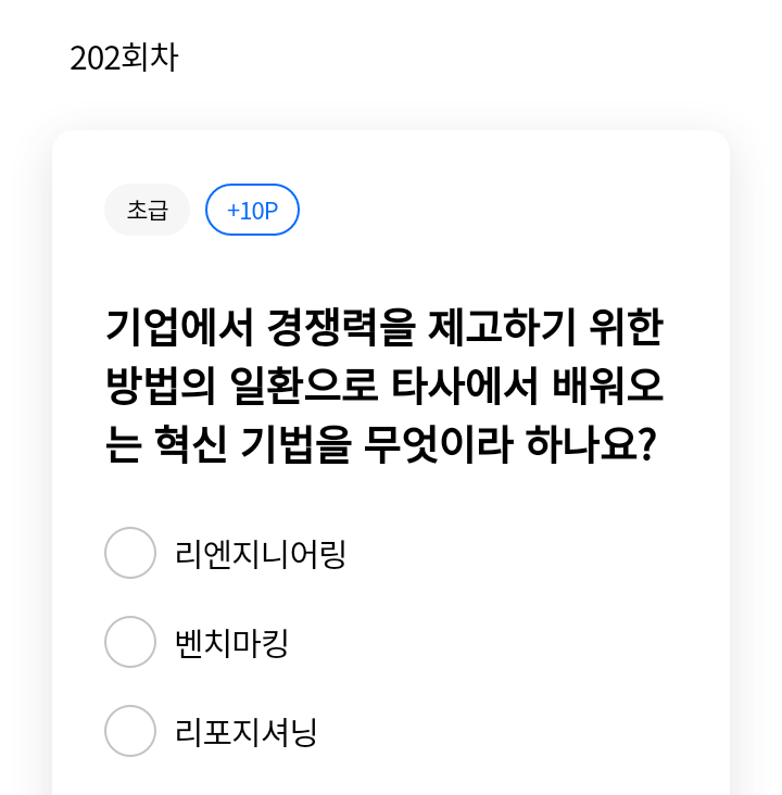 ▶ 정답 : 벤치마킹