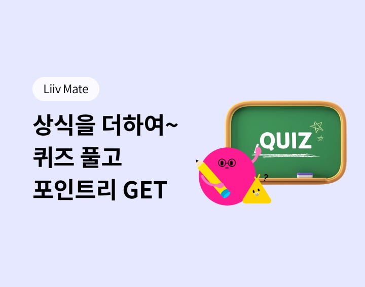 리브메이트 일반상식 퀴즈는 매주 새롭게 찾아갑니다. 퀴즈 풀고 30포인트 받아가세요.