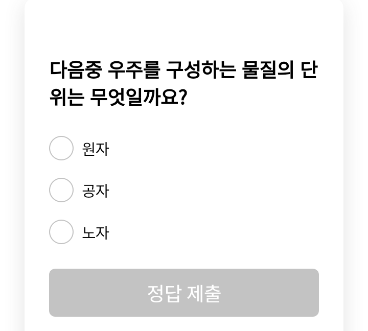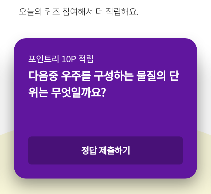 리브메이트 오늘의 퀴즈(21.07.29), 퀴즈정답, 우주를 구성하는 물질의 단위