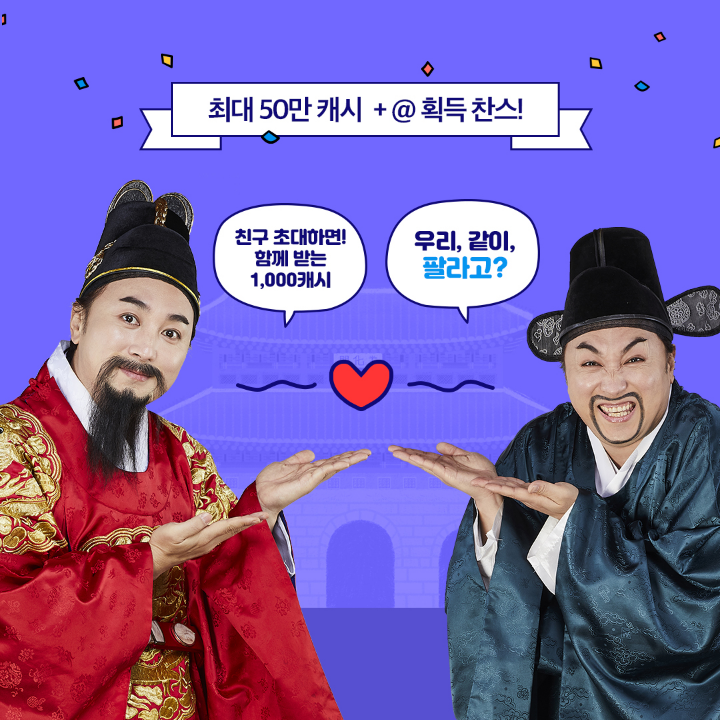 - 초대된 친구가 3천원 이상 충전하면 1+1 캐시백 까지!