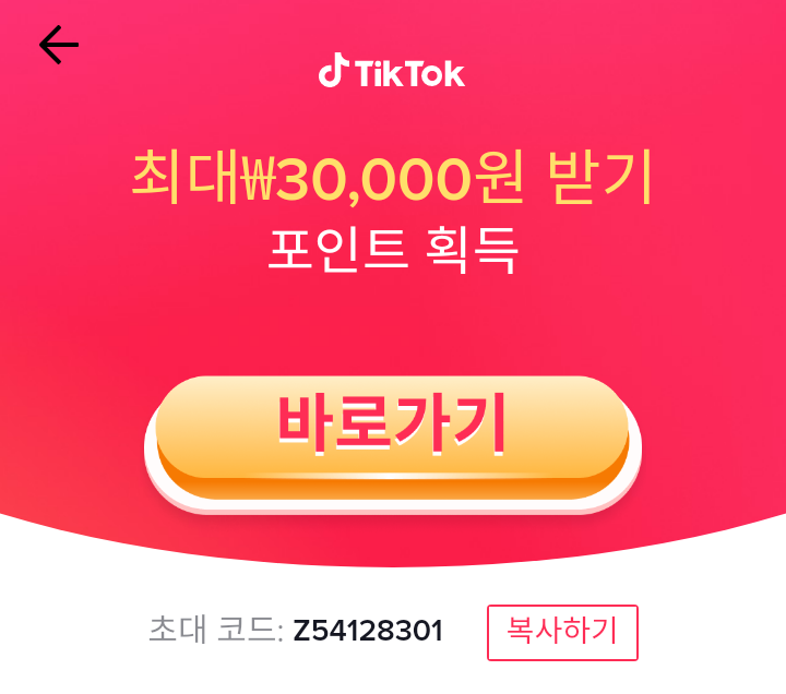 앱테크, 틱톡(TiKTok) 친구초대 이벤트 최대 400000원( 추천코드 : Z54128301 )