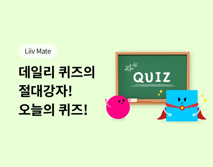 리브메이트 오늘의 퀴즈는 매일 오전 10시에 새롭게 찾아갑니다. 퀴즈 풀고 포인트 받아가세요.