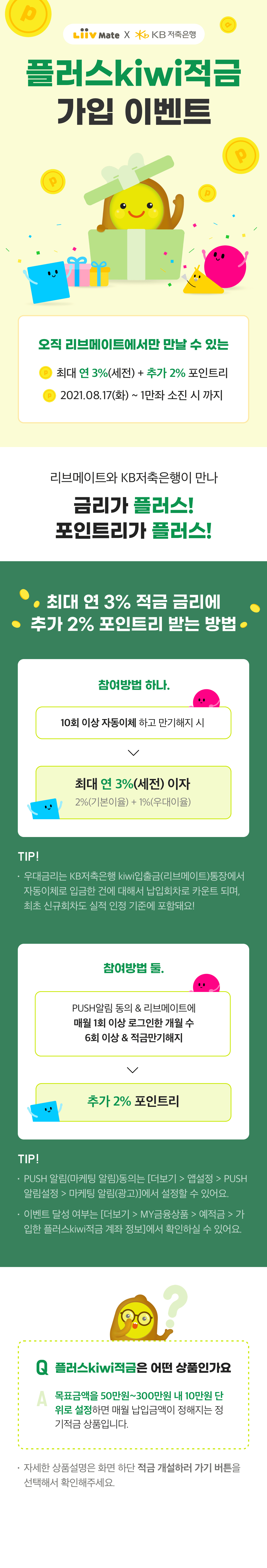 리브메이트 오늘의 퀴즈(21.08.27), 퀴즈정답, 리브메이트 플러스kiwi적금은