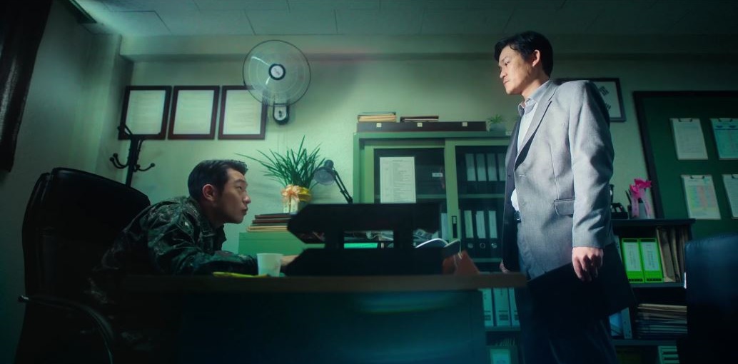 임지섭 대위가 헌병대로 전입온다. 간부들이 헌병대장 사무실에 모여 인사를 나눈다. 헌병대장은 박중사에게 보좌관 잘 챙겨주라고 지시한다.