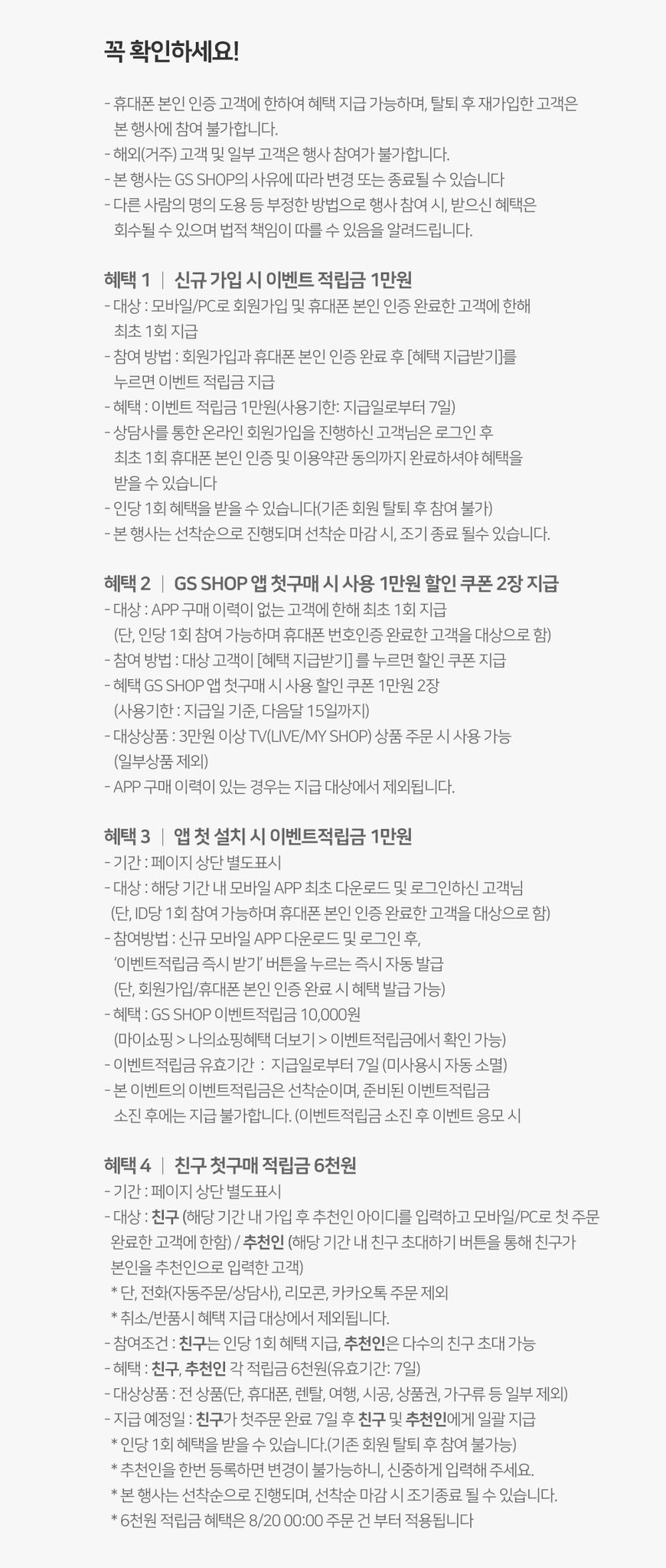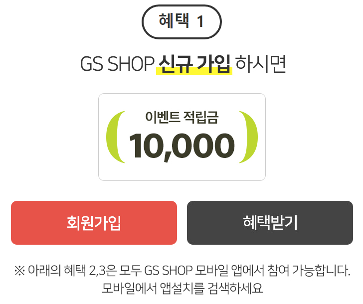 - 혜택3 : GS SHOP 앱설치 적립금 1만원