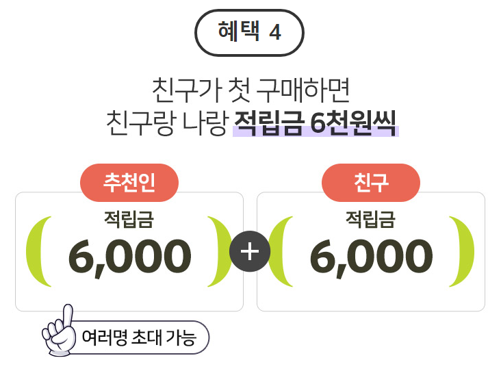 - 혜택4 : 친구추천 적립금 6천원