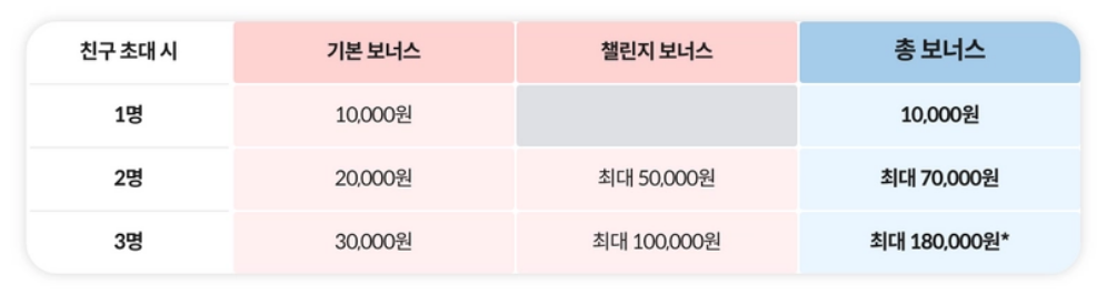 ▶ 친구초대 조건을 충족하는 친구 당 일정 금액의 보너스를 제공