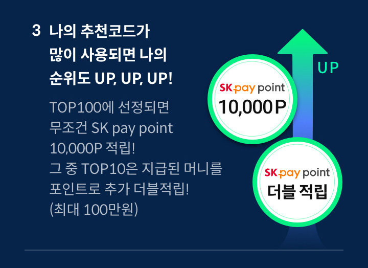 - TOP 100에 선정되면 무조건 SK pay point 10000P 적립!