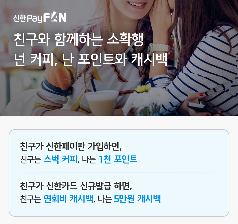- 친구가 신한페이판 가입하면 친구는 스벅커피, 나는 1천포인트