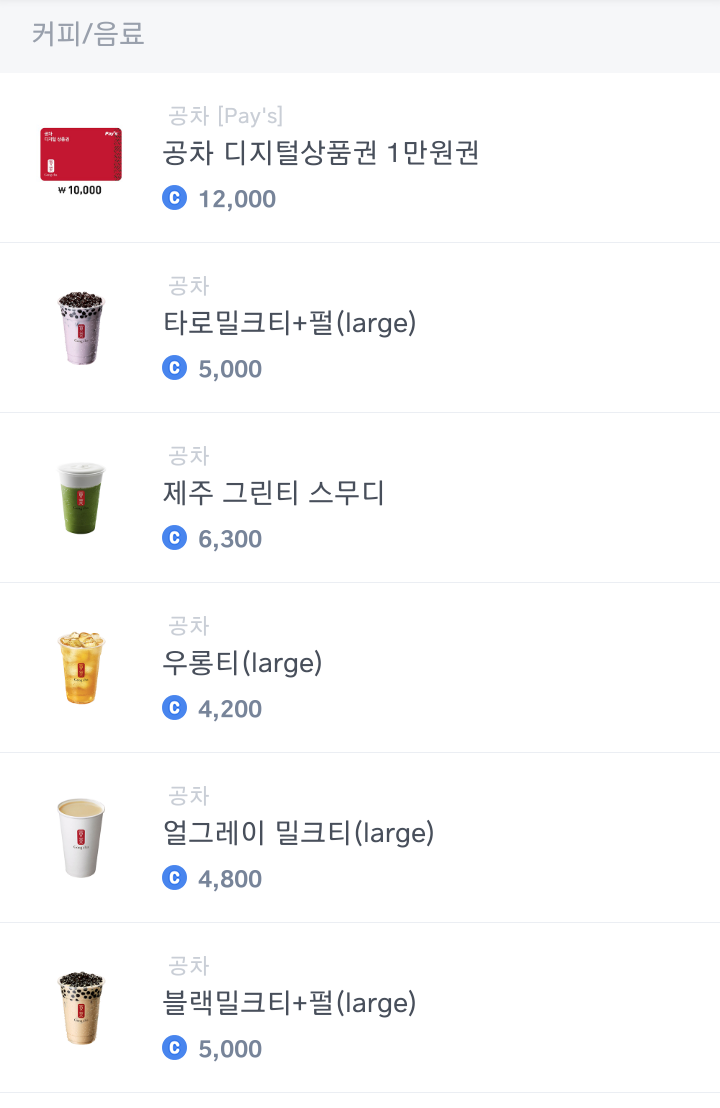 - 적립한 캐시로 커피/음료, 아이스크림, 편의점/마트, 피자/버거/치킨, 문화상품권 등 쇼핑 가능