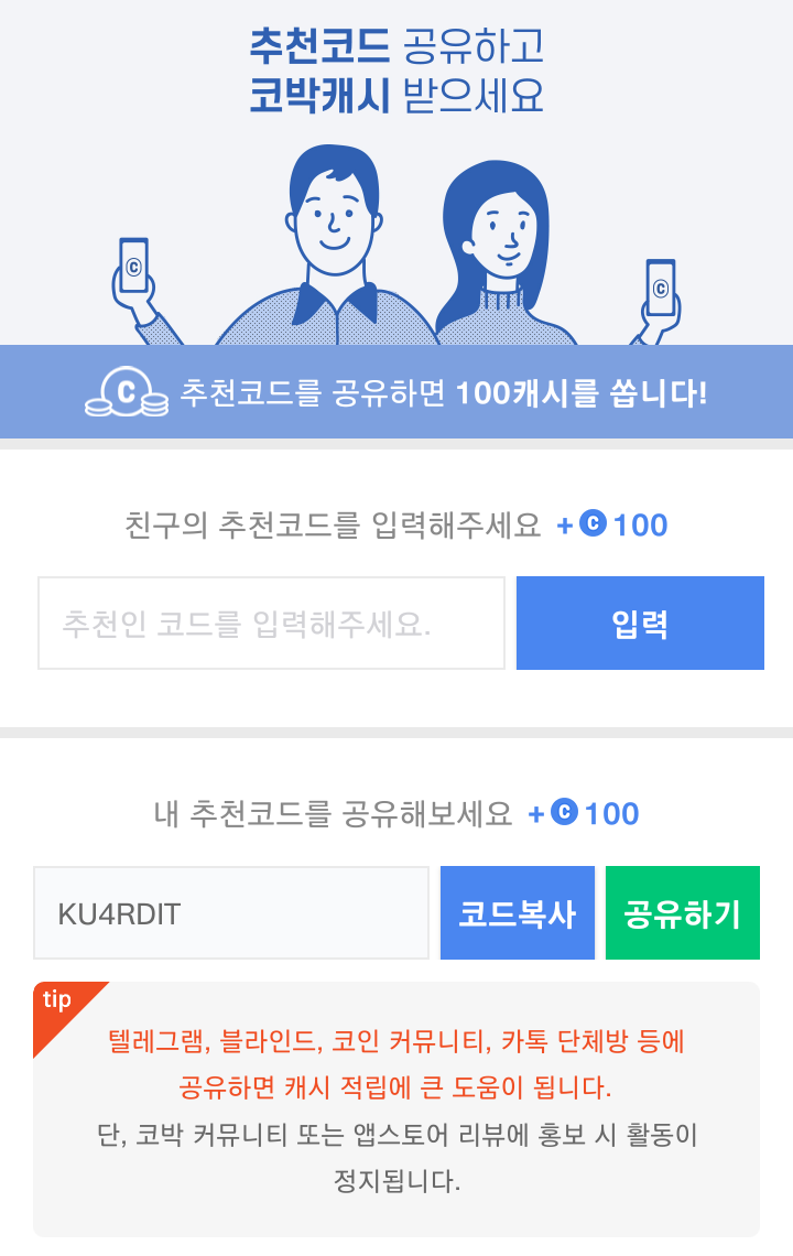앱테크, 코박(cobak) 친구초대 100캐시 즉시 지급( 추천코드 : KU4RDIT)