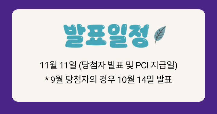 - 참여 방법에 따라 최대 15만원 상당의 PCI가 지급되며, 참여 완료 후 자동 지급된다.