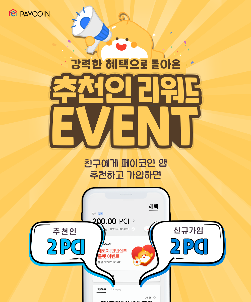 *추천인 이벤트 참여 시, 실시간으로 지급되는 2PCI 리워드 이벤트와 별개의 이벤트이다.