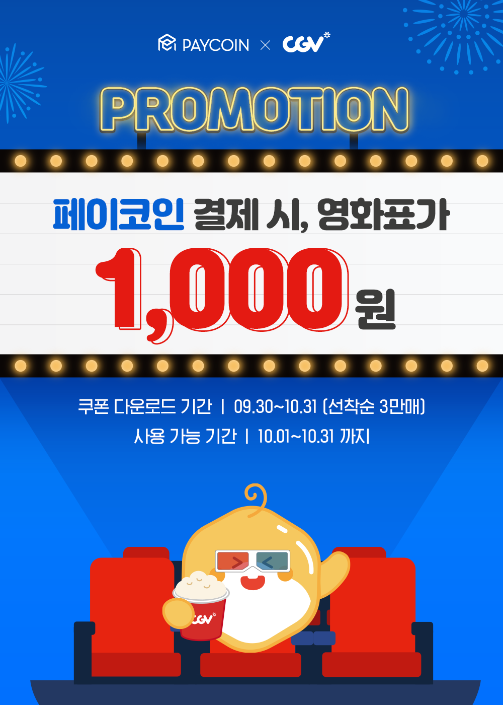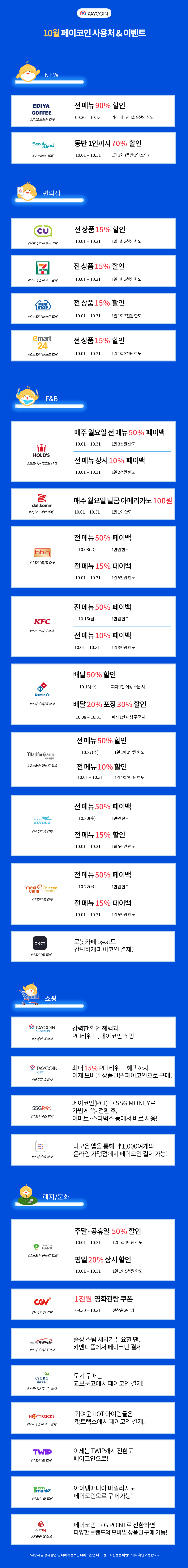 - 페이코인 결제시 10% 페이백(1일 1회 3천원 한도) : 2021.10.19 ~ 2021.10.31