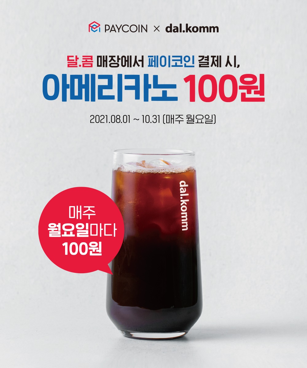 - 페이코인 앱 신규가입 시, 리워드코드 입력란에 'DALKOMM' 입력하면 1PCI + 달콤 시즌메뉴 무료쿠폰 증정!(*쿠폰 지급: 매주 월요일, 이전 주 신규가입자 대상 SMS로 쿠폰번호 발송)