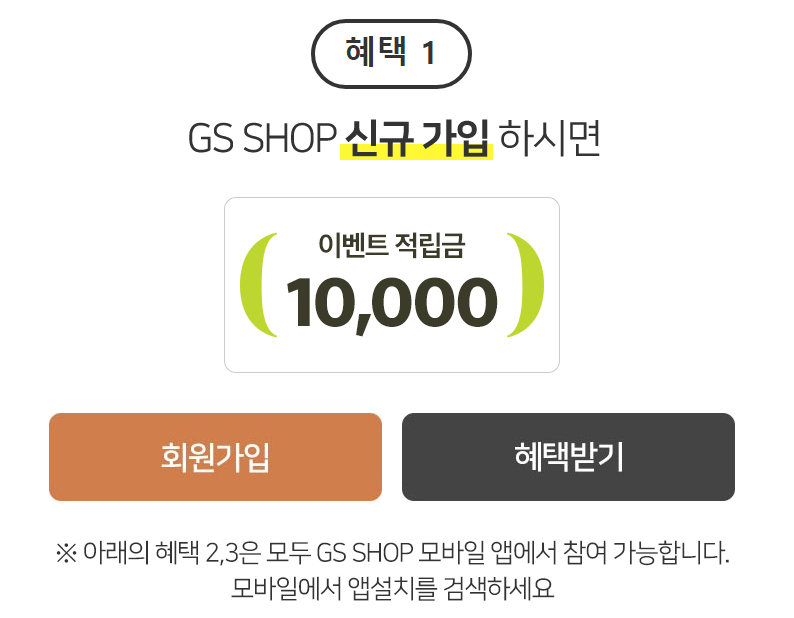 ※ 혜택2, 3은 모두 GS SHOP 모바일 앱에서 참여 가능