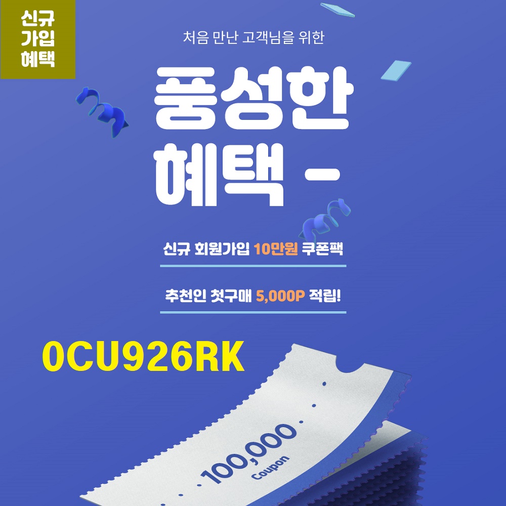 - 가입시 쿠폰이 자동 발급, 마이페이지>나의 쿠폰에서 확인 가능