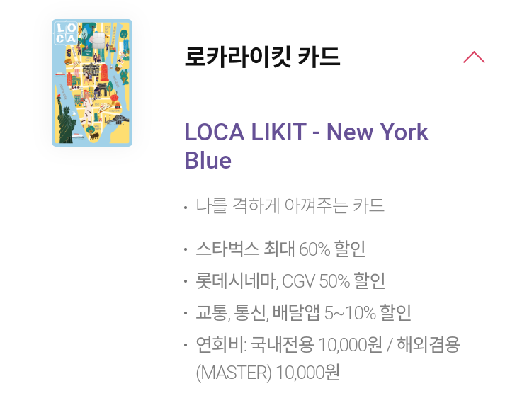 - LOCA for 카드 연회비 : 20000원(국내전용/해외겸용(Msater))