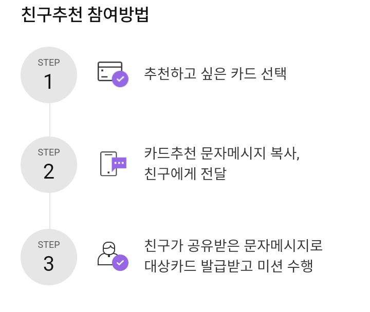 - 혜택 지급 시점에 피추천자가 카드를 소지하고 있어야 혜택이 지급된다.
