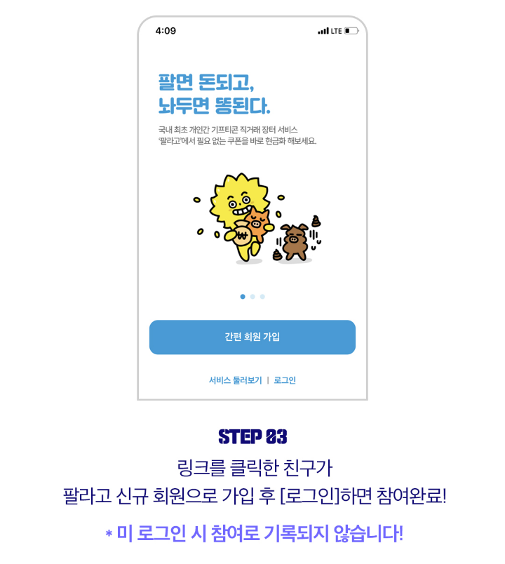 step 3) 링크를 클릭한 친구가 팔라고 신규 회원으로 가입하면 참여 완료