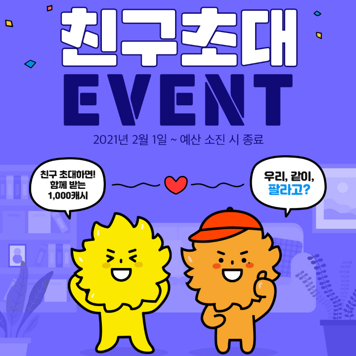 ▶ 내가 초대한 친구가 팔라고 신규 회원이 되면, 나와 친구 각각 1000캐시