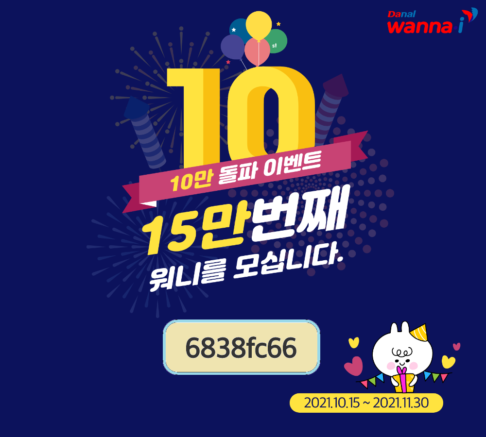 앱테크, 다날 워너아이 10만 돌파 기념 이벤트( 추천코드 : 6838fc66 )
