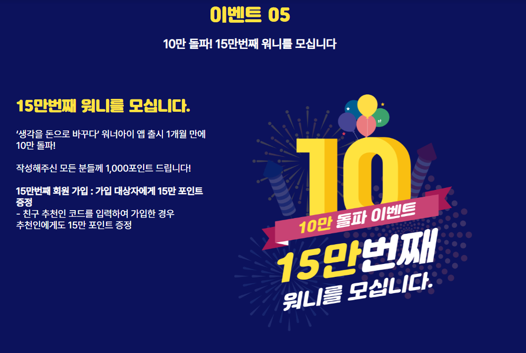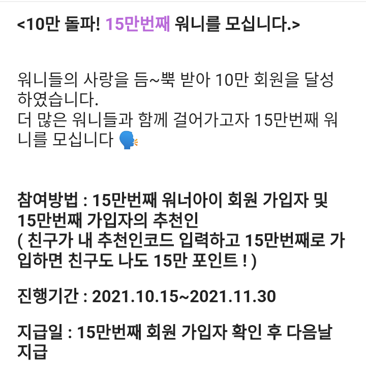 워너아이 15만번째 가입대상자 15만 포인트 증정