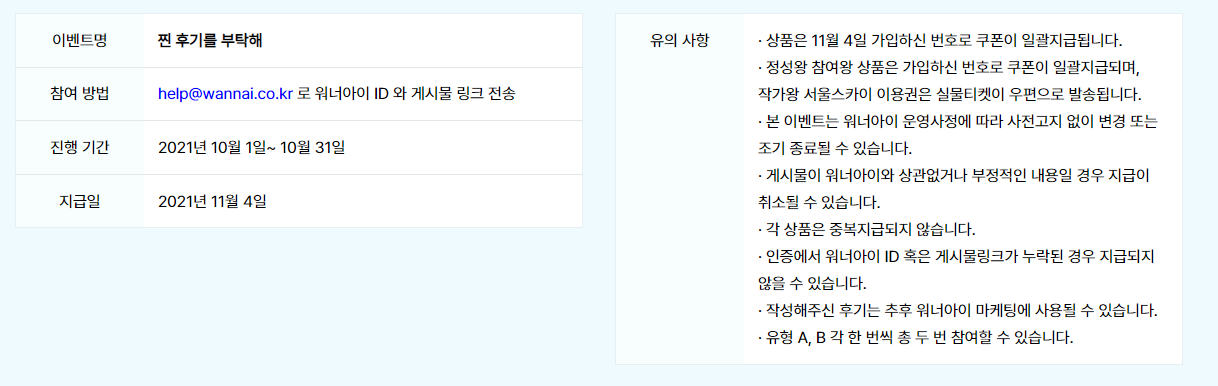 - 본 이벤트는 워너아이 운영사정에 따라 사전고지 없이 변경 또는 조기 종료 될 수 있다.