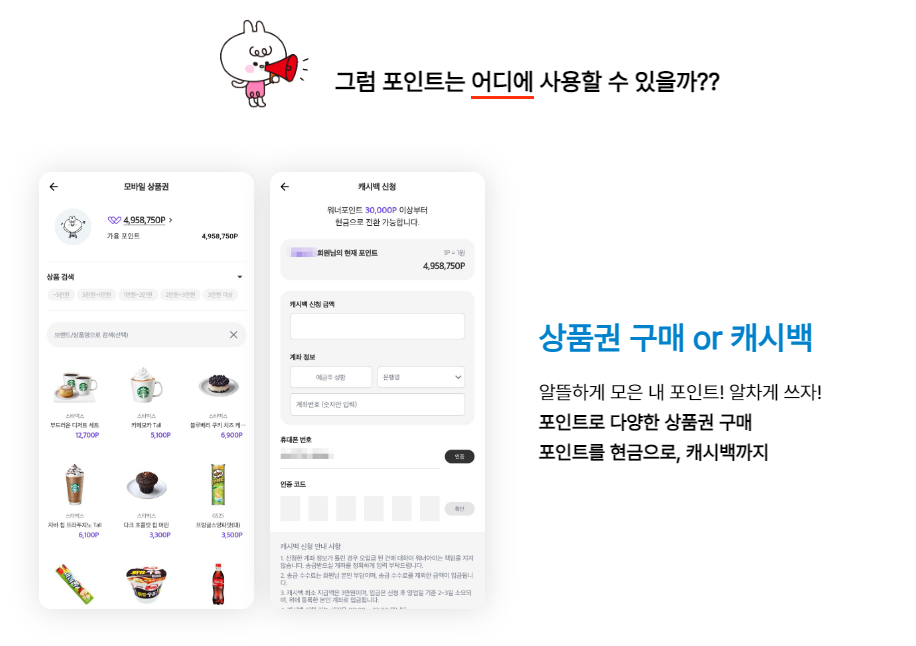- 포인트를 현금으로 캐시백
