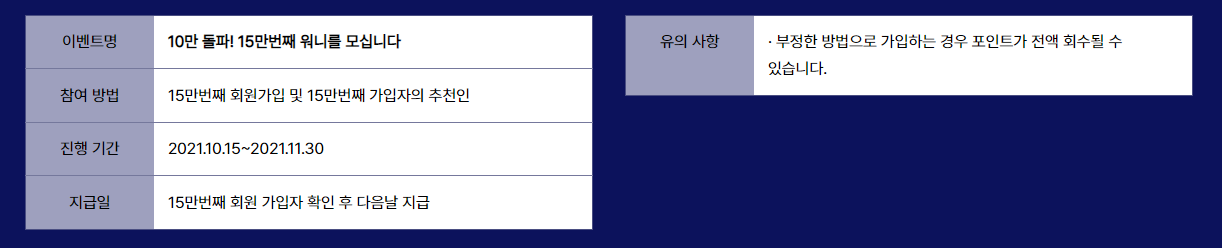 ▶ 지급일 : 15만번째 회원 가입자 확인 후 다음날 지급