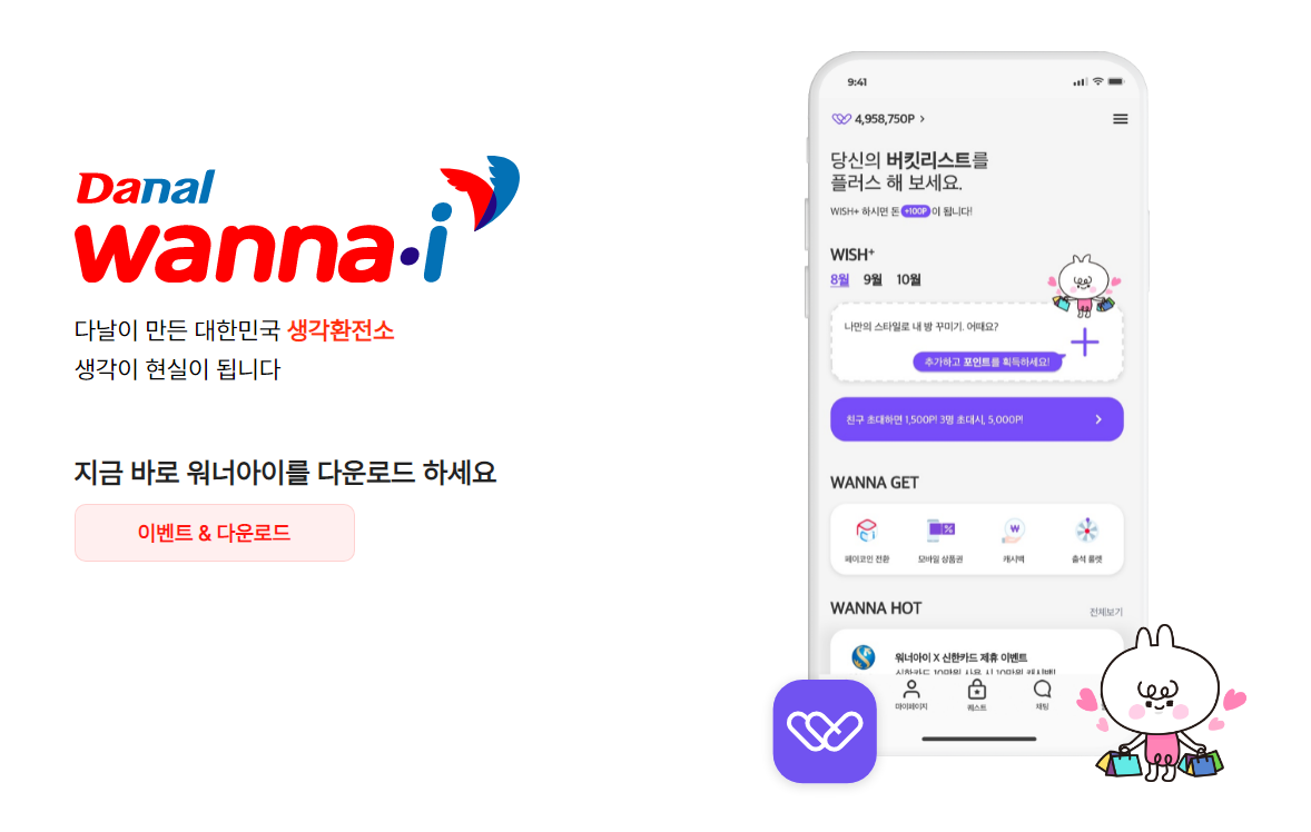 ★ 다날 워너아이(wanna-i) 추천링크 : https://wannaiapp.page.link/5wPWFWLyrabZ9mZy5